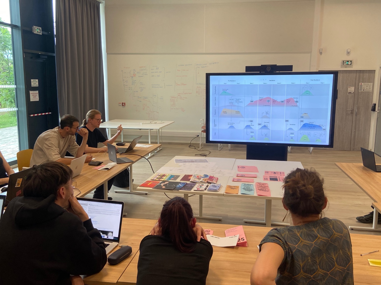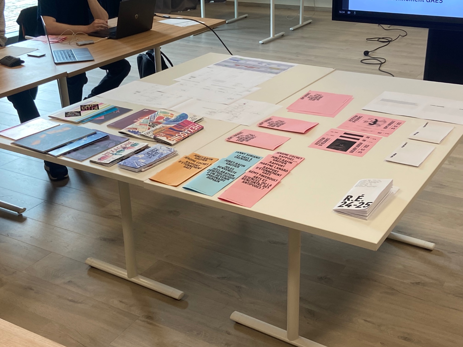 The Production workshop concludes the EPE project's workshop-based cooperation program, after 5 workshops resulting in the production of around 25 experimental editorial projects, bringing together groups of students from different educational backgrounds and countries, crossing screen and paper using web-to-print technologies. The two years of the project were divided into two main phases, Propagation and Prototyping, with the final phase involving an attempt at full-scale Production, in a quasi-professional context. The Hexagone theater, a national scene located in the town of Meylan in the Grenoble metropolis, is our major partner for this last in situ action. In order to fulfill its mission of artistic production and distribution, mainly in the performing arts, the Hexagone has a small-scale communications team: 2 people invest their time in organizing and distributing information that will enable the public to discover the theater's program. Websites, posters and flyers are all tools already in place in the theater's communications, but one specific activity suffers from a certain invisibility: artist residencies, which appear only very occasionally in the institution's overall communications, and sometimes under several forms and names. Our proposition is that a team of people belonging to the EPE consortium participate in a workshop to produce plausible editorial chains dedicated to the valorization of activities generated by Hexagone's artist residencies: intermediate realizations, documents produced by the artists (texts, images, videos, audio recordings), public performances, master classes, etc.